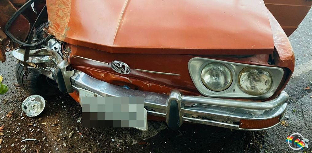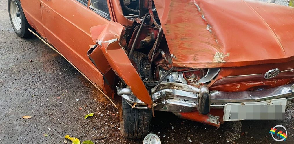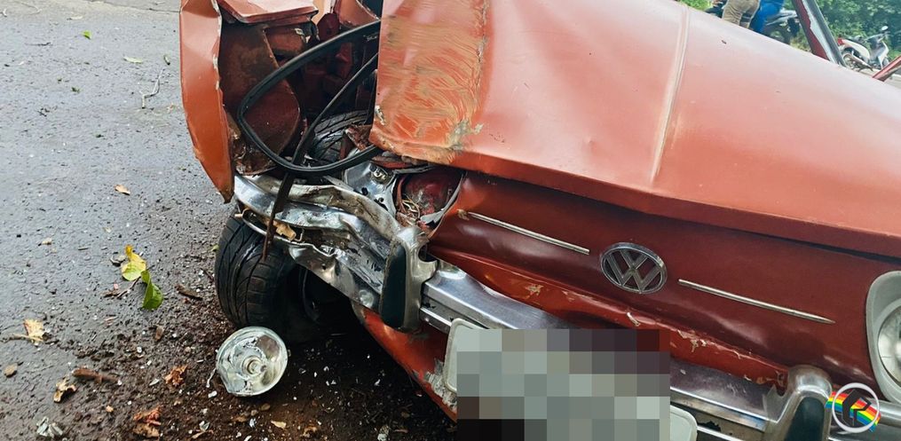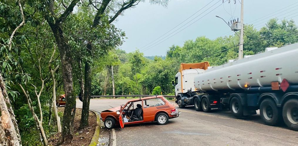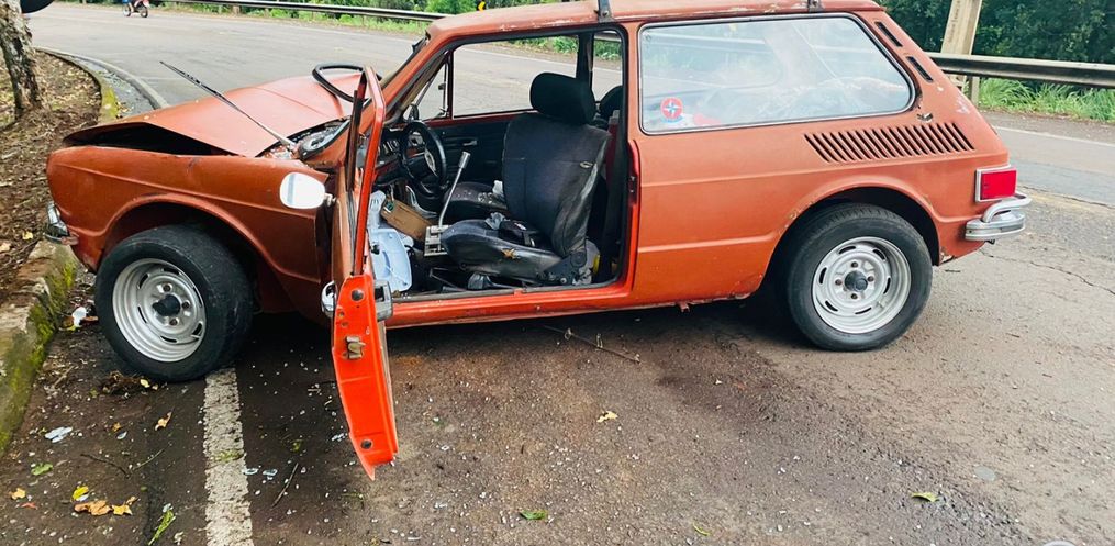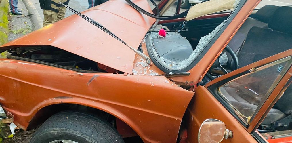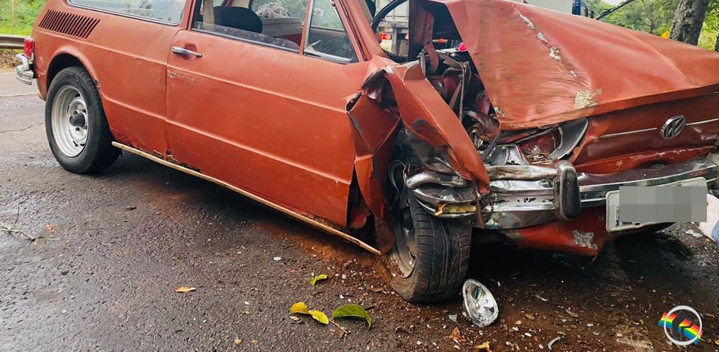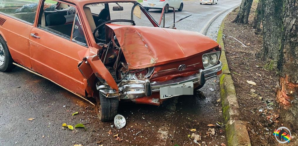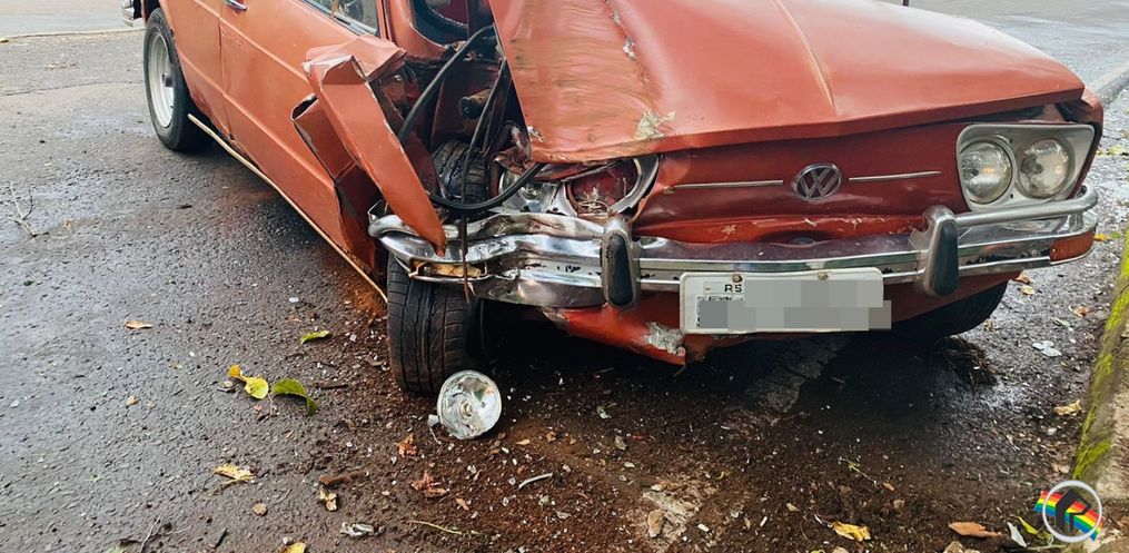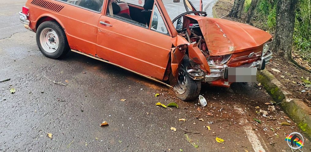 O condutor de uma Brasília, placas de Santa Rosa - RS, perdeu o controle do veículo, saiu da pista e colidiu contra uma árvore.
