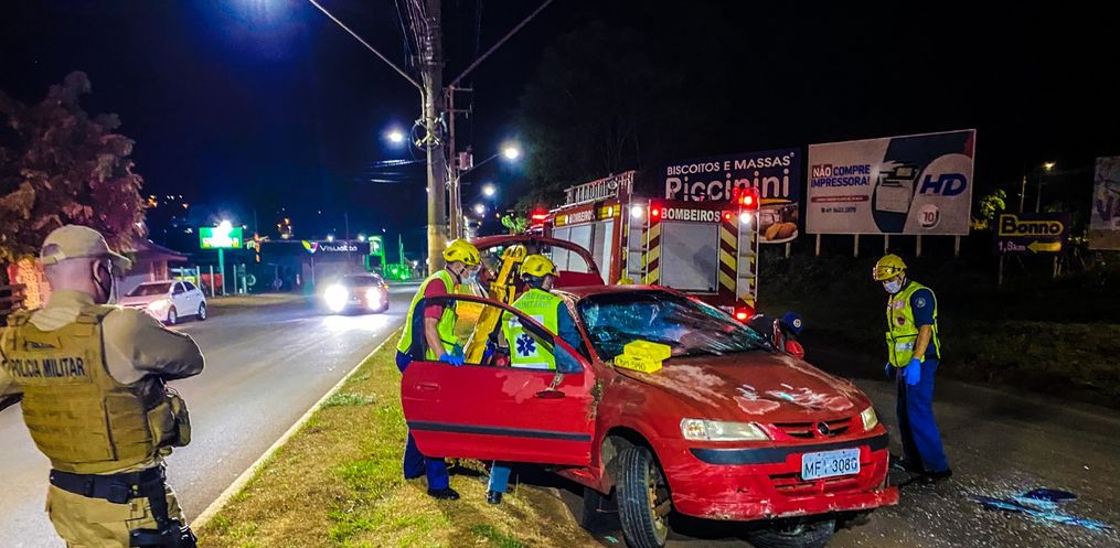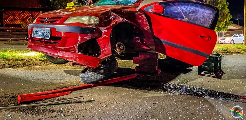 Segundo apurado no local, o veículo envolvido é um Celta com placas de São Miguel e seguia sentido centro, quando o homem que conduzia o carro perdeu o controle de direção, colidiu no poste e capotou sobre a via.