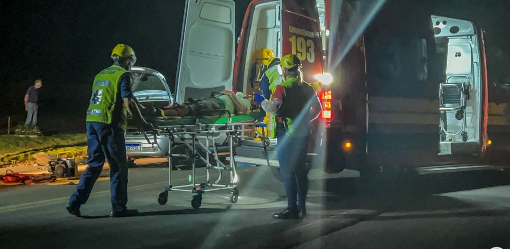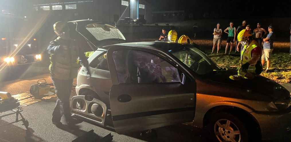 Uma colisão grave entre um carro e um caminhão deixou uma pessoa ferida na BR-282, comunidade de Aparecida em São Miguel do Oeste. O acidente foi por volta das 21h40 deste sábado, 26.