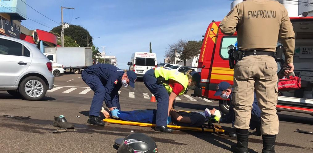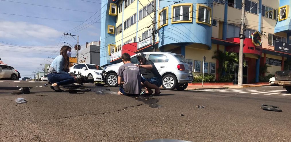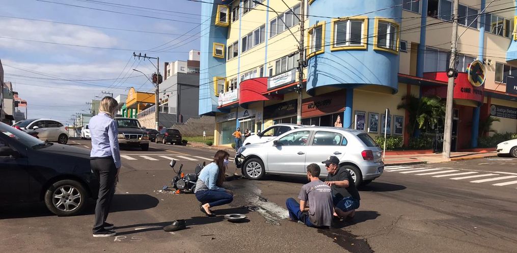 Segundo apurado, a condutora do Gol seguia pela Sete de Setembro e ao adentrar na Marquês do Herval não viu a moto, causando a colisão.