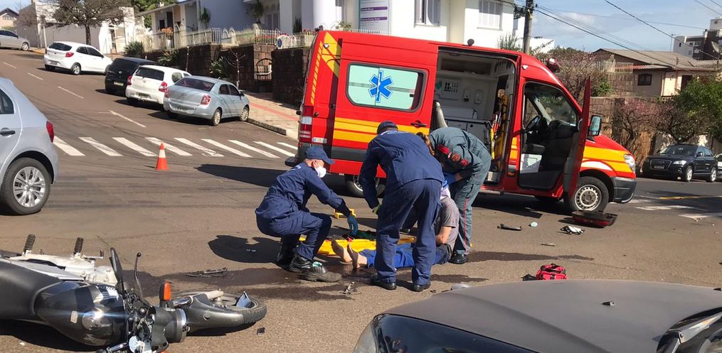 A colisão envolveu um VW/Gol e uma Honda/ CG 150 que era conduzido por um rapaz de 21 anos.
