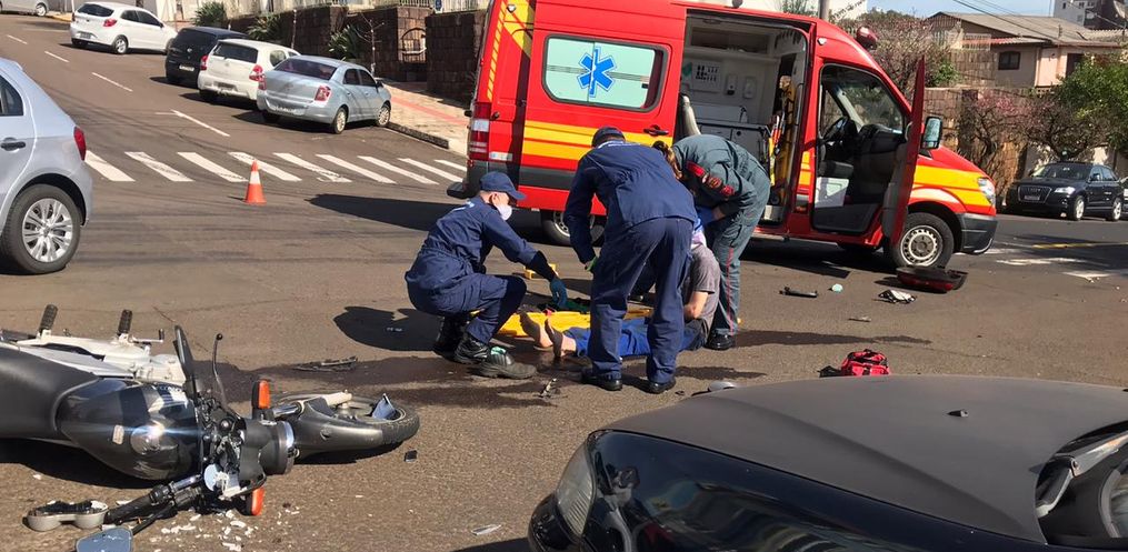 Com o choque, ele teve ferimentos na cabeça, pernas e braços. O Corpo de Bombeiros foi acionado, imobilizou a vítima e conduziu ela até o Hospital Regional.