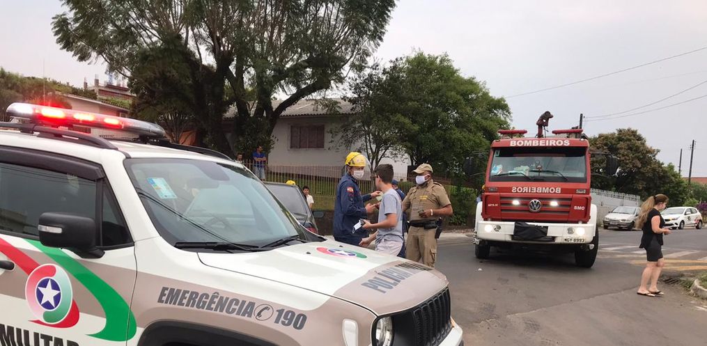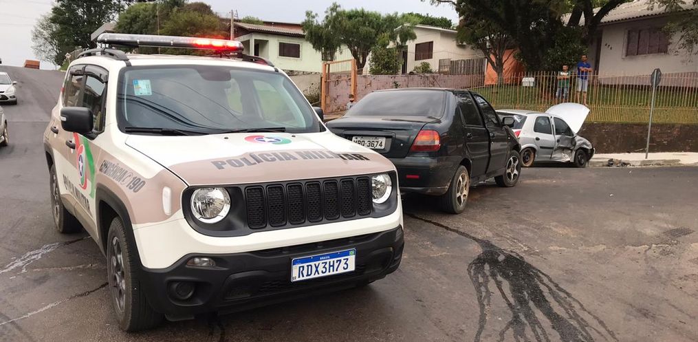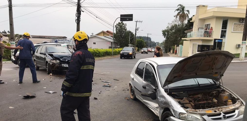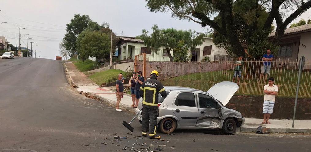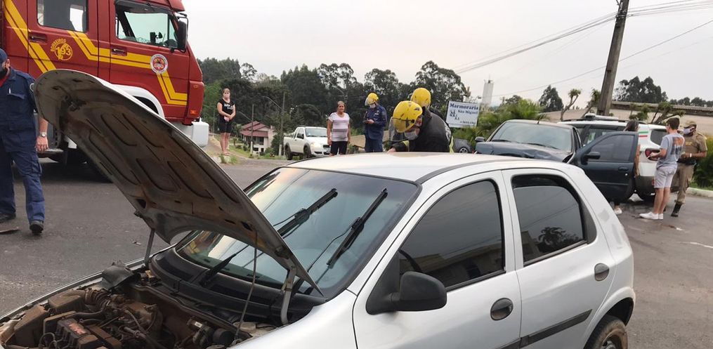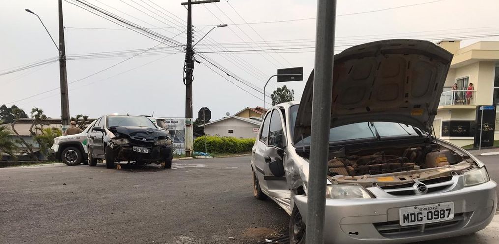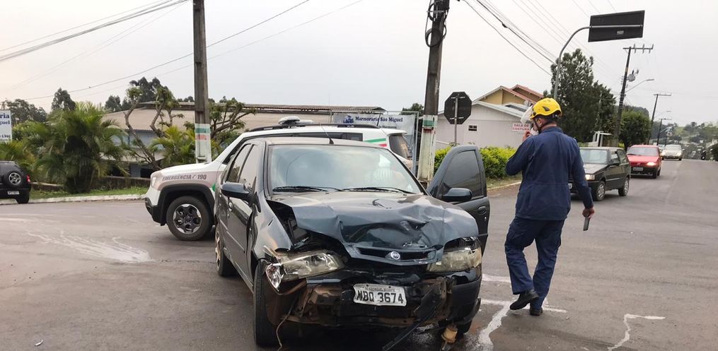 A Polícia Militar e o Corpo de Bombeiros de São Miguel do Oeste atenderam por volta das 16h45 deste domingo, 06, um acidente de trânsito tipo colisão lateral envolvendo um Siena placas do município e um Celta de Descanso, no cruzamento das ruas Men de Sá com a Marcilio Dias, no centro.