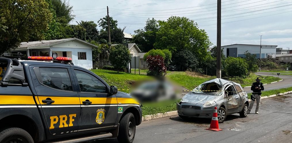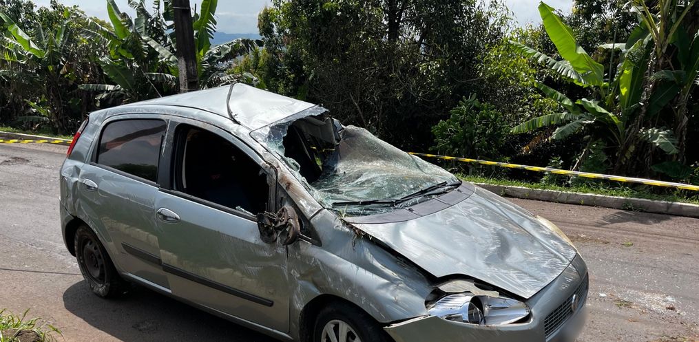 Um veículo capotou após o condutor perder o controle da direção por volta das 10h45 desse sábado, 19, na 163, Bairro São Sebastião, em São Miguel do Oeste.