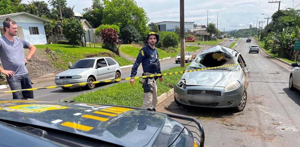 Um vídeo repassado ao jornalismo da Peperi mostra o momento exato do acidente. O carro seguia no sentido Guaraciaba a São Miguel do Oeste quando o condutor perdeu o controle da direção, invadiu a contramão e capotou.