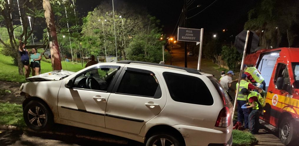 O Corpo de bombeiros e a Polícia Militar atenderam por volta das 19h30 um acidente de trânsito na Jhon Kennedy no Bairro São Luiz em São Miguel do Oeste.