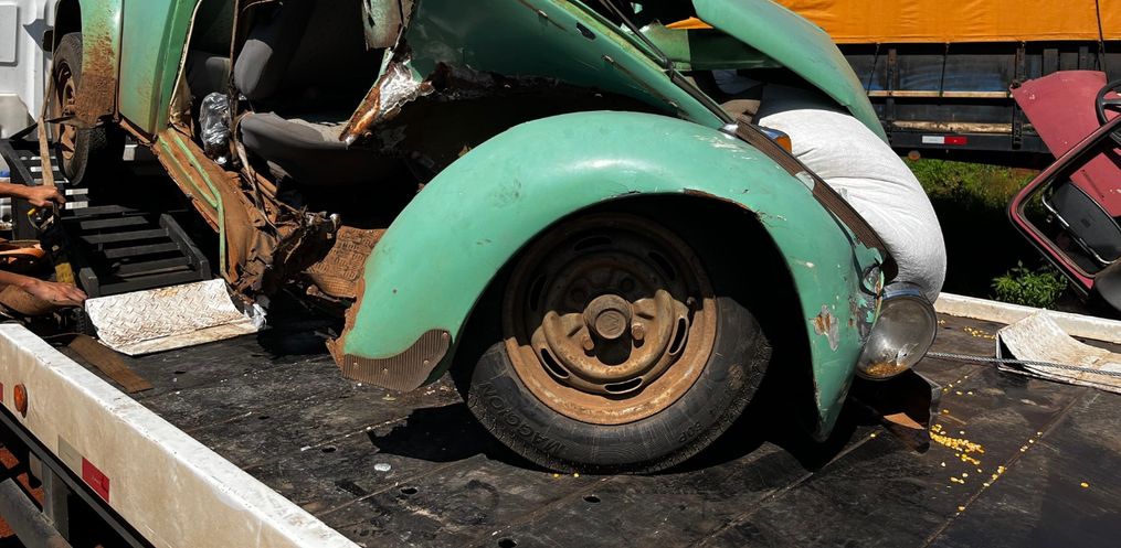 Na manhã desta quinta-feira, 18, os veículos foram trazidos ao pátio conveniado, em São Miguel do Oeste. O Fusca ficou totalmente retorcido após o impacto. Na parte interna ainda estava um fardo de refrigerante e no compartimento de cargas um saco de milho. Já o caminhão envolvido apresentava danos na parte frontal.