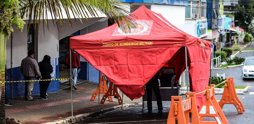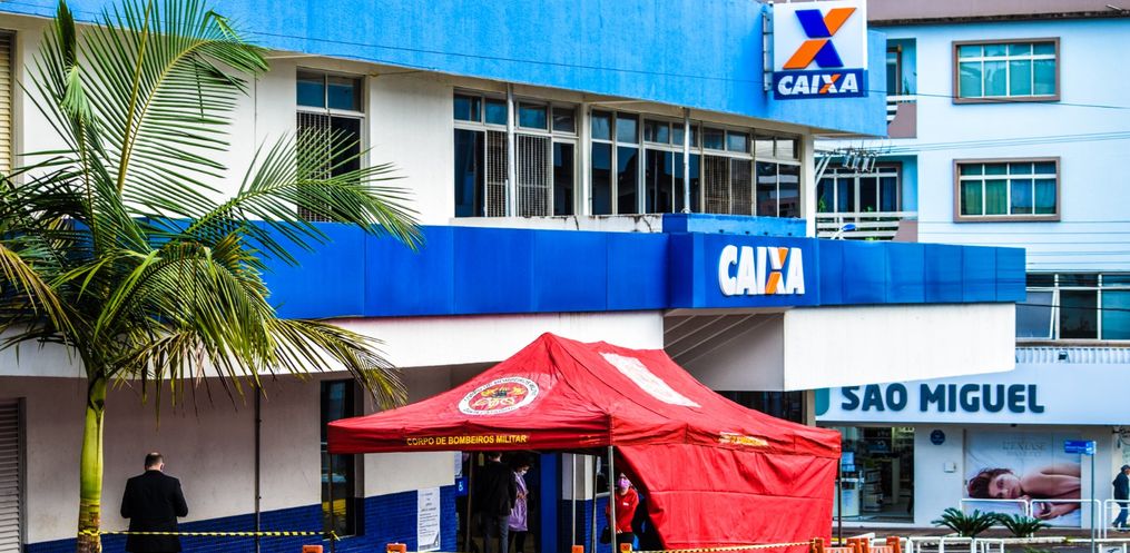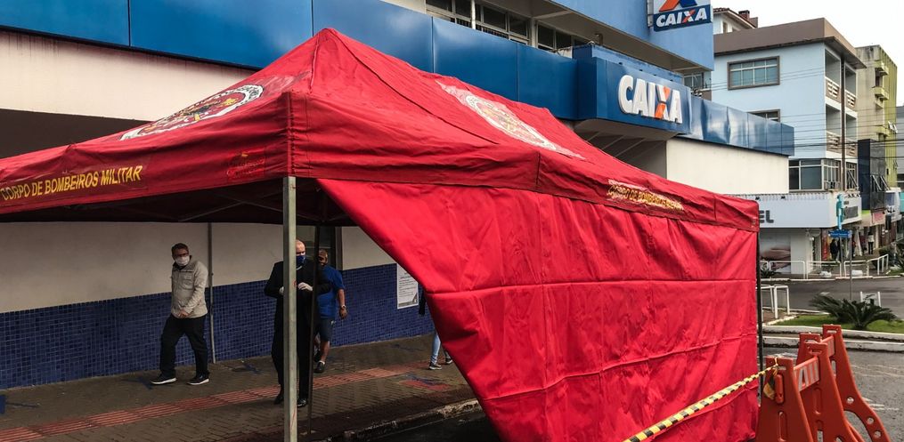 Uma estrutura foi instalada em frente a agência da Caixa Econômica Federal em São Miguel do Oeste, nesta quarta-feira, 06.
