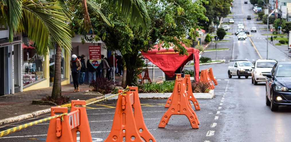 Também foram colocados nos estacionamentos, um isolamento com cavaletes, para ninguém estacionar e assim evitar uma maior aglomeração.