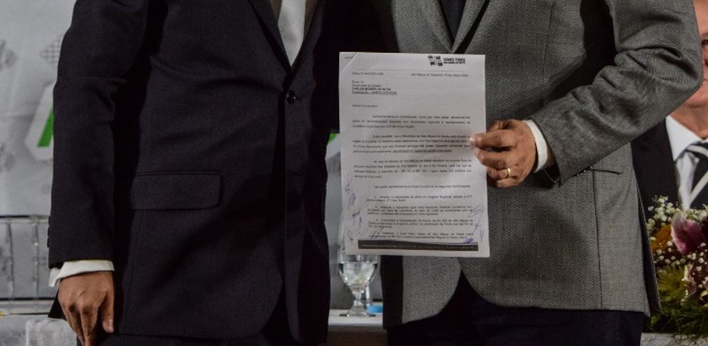 Depois de 437 dias sem voltar para São Miguel do Oeste, o governador assinou contratos dos convênios do transporte escolar. Valor total passa de R$ 1,1 milhão para São Miguel, Bandeirante, Paraíso, Descanso, Barra Bonita, Belmonte e Guaraciaba. Cerca de 23 escolas serão beneficiadas. Para São Miguel, o valor foi de R$ 209 mil.