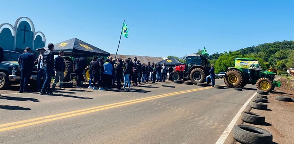 Um grupo de pessoas iniciou na manhã desta terça-feira, 01, um manifesto na SC 163, em Santa Fé Alta, interior de Itapiranga.