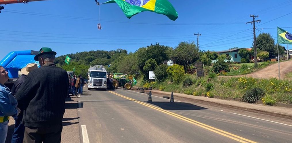 A manifestação é pacífica e tem adesão de empresários, comerciantes, agricultores, entre outros.