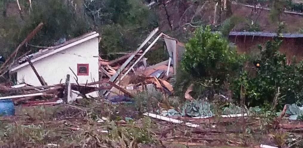 Imagens que circulam nas redes sociais mostram o rastro de destruição causado pelo forte temporal que atingiu Descanso e Belmonte no final da tarde desta quarta-feira, 10.