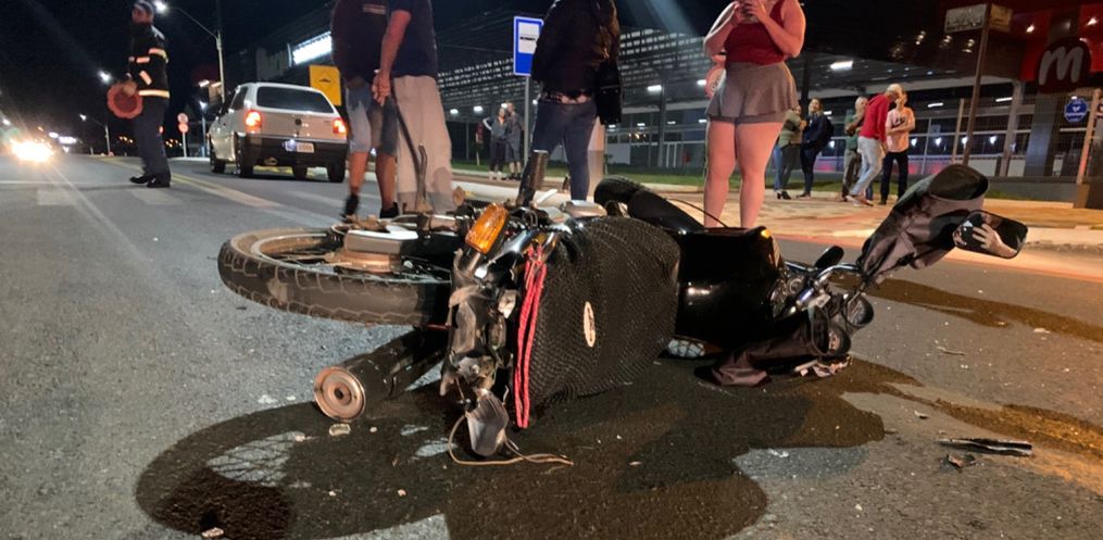 Com a queda a motociclista sofreu a suspeita de fratura. Ela foi atendida pelo Corpo de Bombeiros e encaminhada ao Hospital Regional.