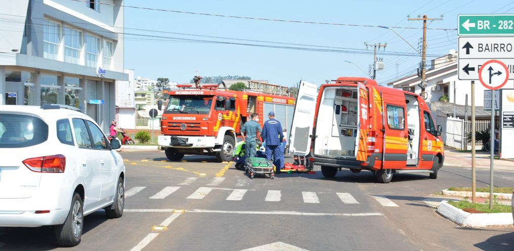 Uma mulher, de 58 anos, ficou ferida após ser atropelada por uma moto na Marcílio Dias, cruzamento com a Itaberaba, centro de São Miguel do Oeste. O acidente aconteceu por volta das 13h40 desta quarta-feira, 26.