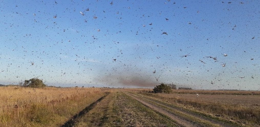 Produtores rurais e funcionários do governo da Argentina estão monitorando a entrada de uma nuvem de gafanhotos no país. Os insetos vieram do Paraguai e, por lá, destruíram lavouras de milho. Agora, a praga avança para a fronteira do Brasil com o Uruguai.