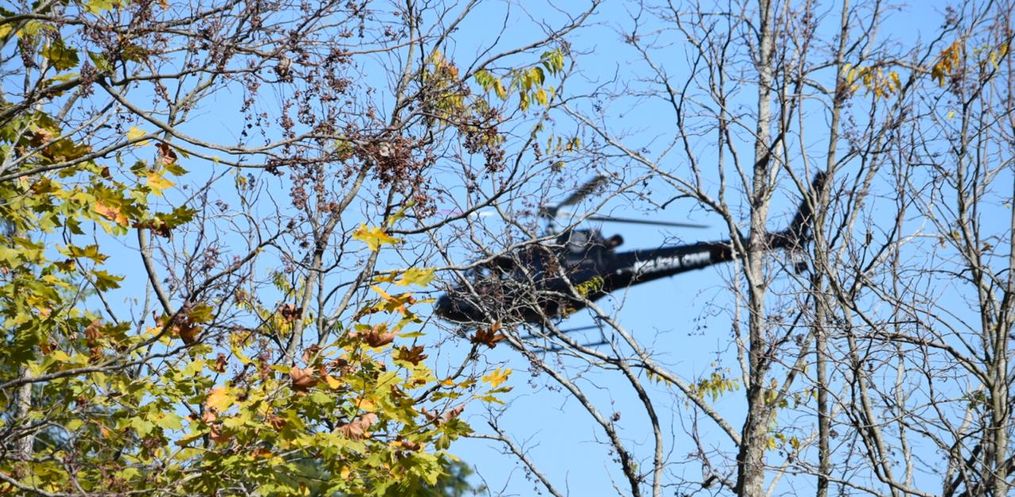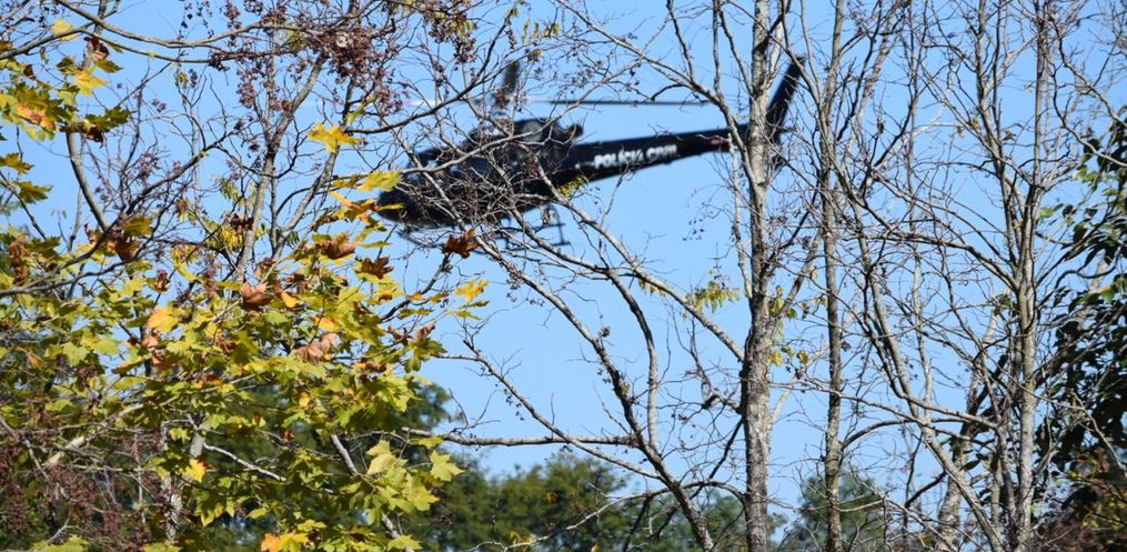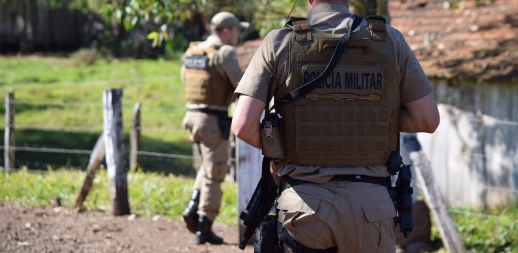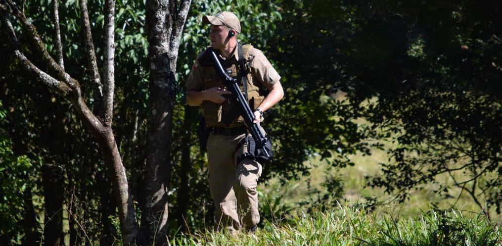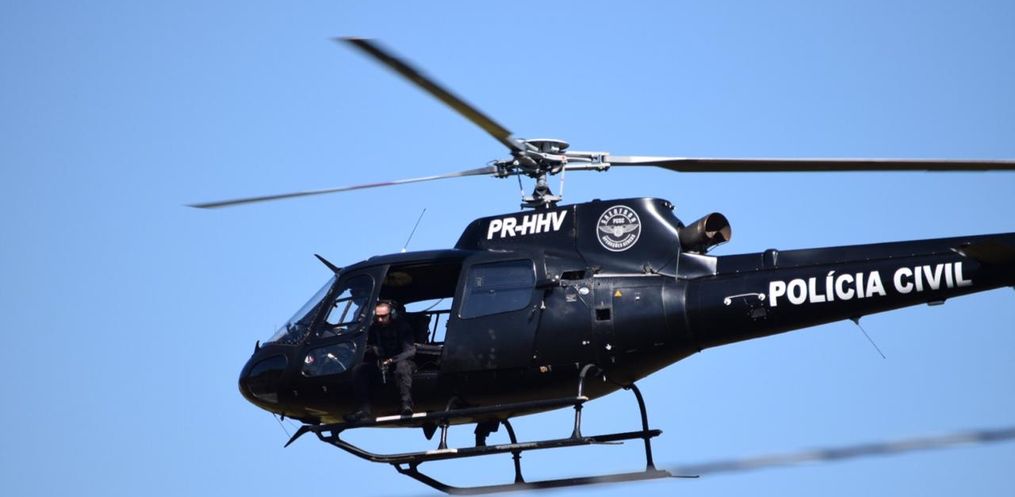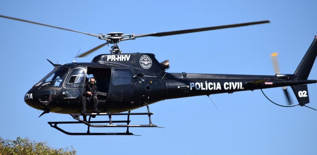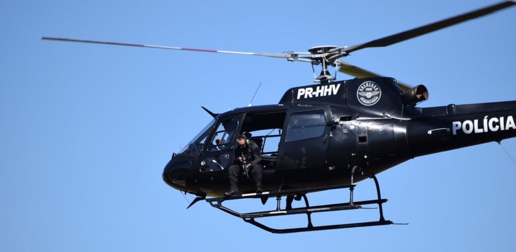 Apoiam a ação a Polícia Militar, helicóptero do Saer Fron e cães farejadores.