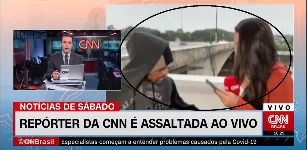 Uma repórter da CNN Brasil assaltada enquando participava da transmissão ao vivo do canal, neste sábado, 27, em São Paulo. A jornalista Bruna Macedo foi abordada por um homem com faca durante a cobertura da emissora sobre as chuvas na capital paulista.