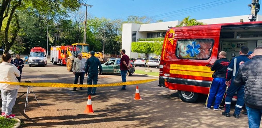 A simulação de acidente de trânsito com vítimas presas às ferragens foi realizada na manhã deste sábado, 03, na Rua do Comércio, em Itapiranga.