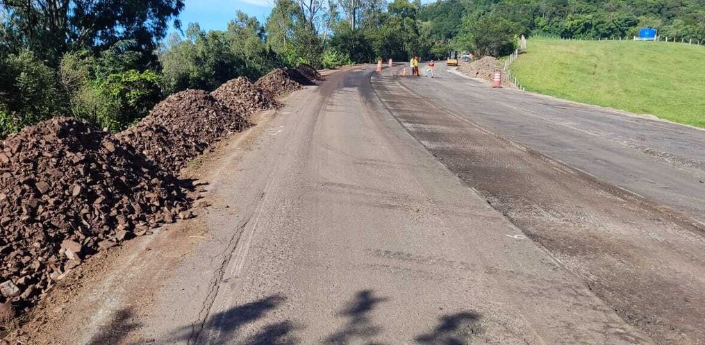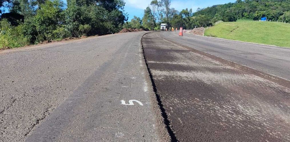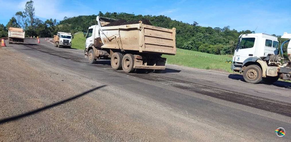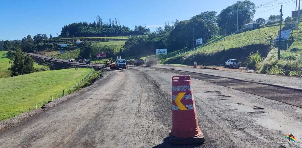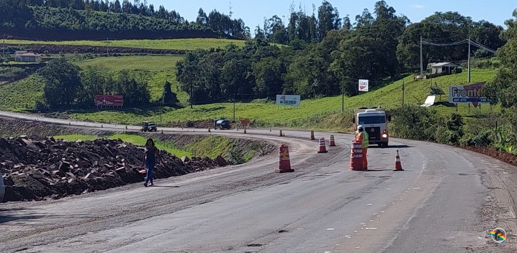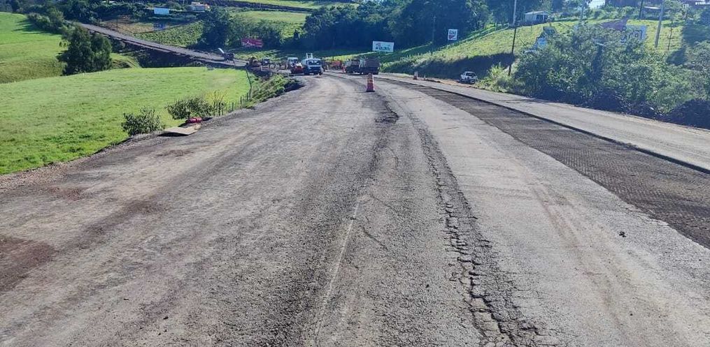 A Peperi foi informada nesta manhã de sexta, pelo Departamento, que a efetiva pavimentação ficará para os próximos dias. Mas o sistema, 'pare e siga' já foi implantado nesta sexta e seguirá pelo final de semana da mesma forma. Este sistema mantém a rodovia federal em meia-pista, tendo a retenção do fluxo em um dos sentidos para acontecer o fluxo no sentido oposto, após diminuir a fila é liberado o trânsito parado. Durante o dia, entre às 7h e 18h, haverá maquinário na pista com o mesmo sistema, e à noite o fluxo também segue em meio-pista no modo 'pare e siga'. Este trabalho seguirá nesta alternância 24 horas por dia.