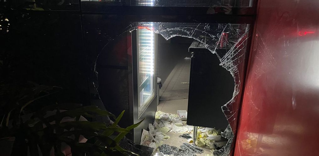A PM constatou o arrombamento da vidraça lateral do mercado e o autor também foi identificado pelas câmeras de monitoramento do local, sendo ele preso e entregue na delegacia.