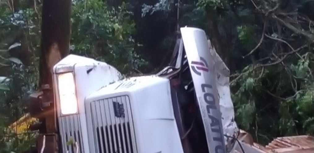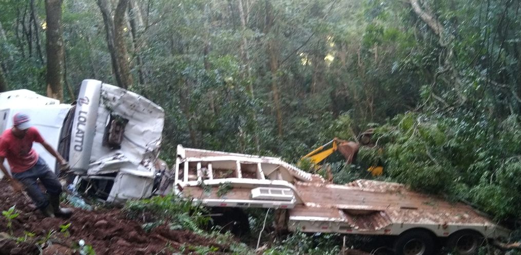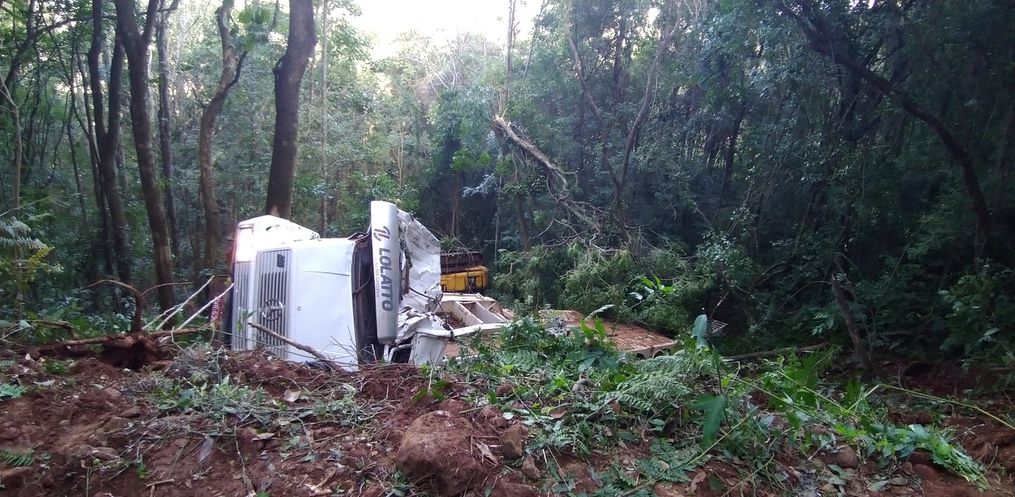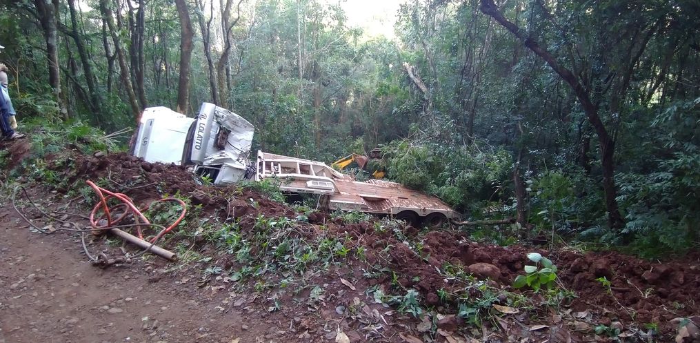 O caminhão estava carregando uma escavadeira que faria um serviço de horas/máquina e uma propriedade no interior do município.