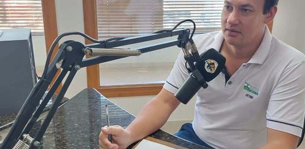 O agente fiscal pontua que a Vigilância Sanitária está à disposição para esclarecer as dúvidas sobre as regularizações nos sistemas de esgotamento sanitário. O atendimento ocorre em uma sala junto à Unidade Básica de Saúde.