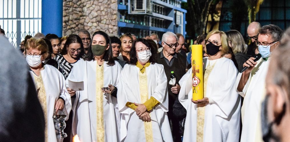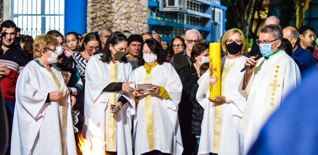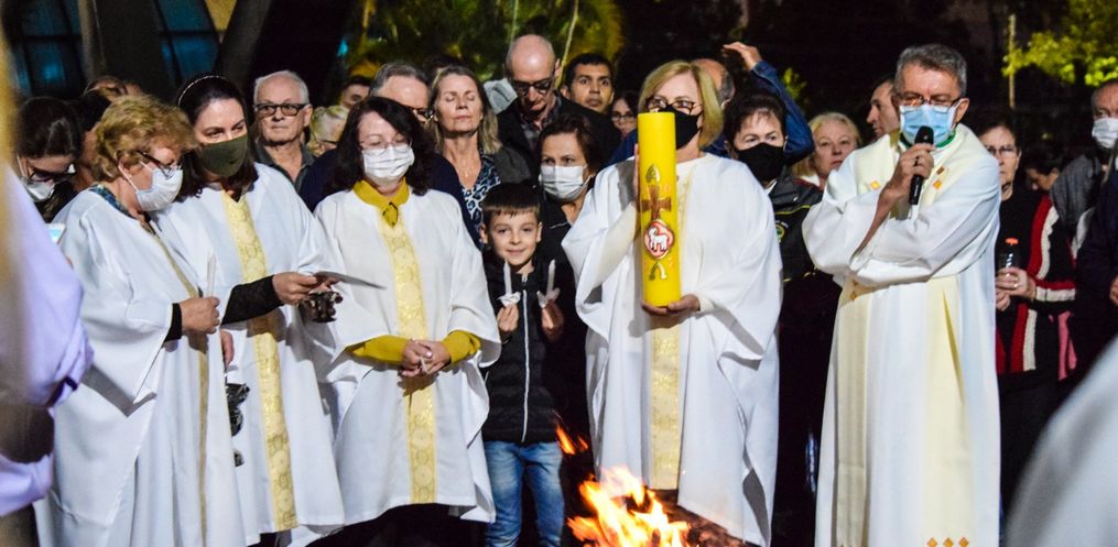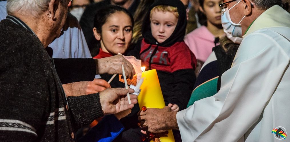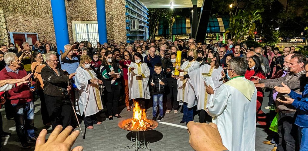 A celebração da Vigília Pascal levou muitos fiéis para a igreja Matriz, na noite deste sábado, 16, em São Miguel do Oeste.