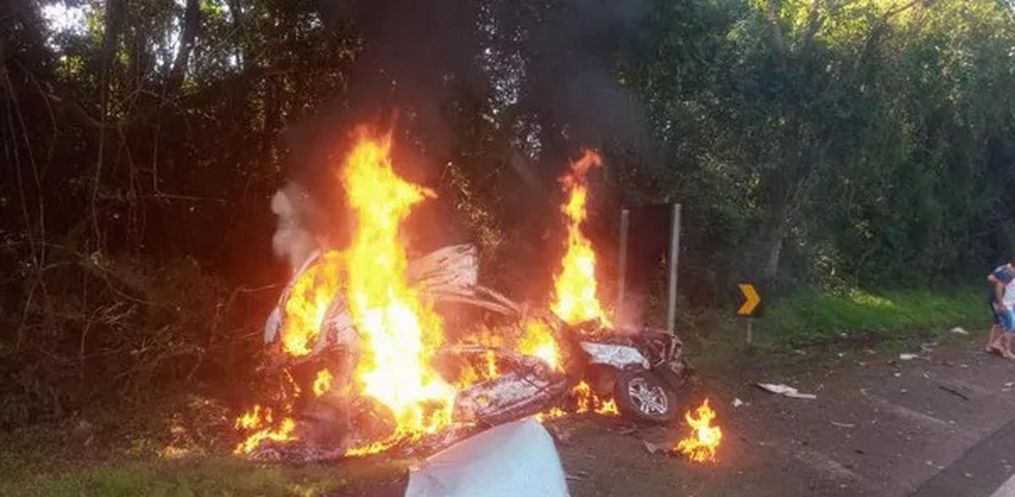 De acordo com informações preliminares do Corpo de Bombeiros, um Chevrolet/Corsa de Saudades (SC), teria colidido em um caminhão, também de Santa Catarina e pegou fogo. As quatro pessoas que estavam no carro morreram carbonizadas.