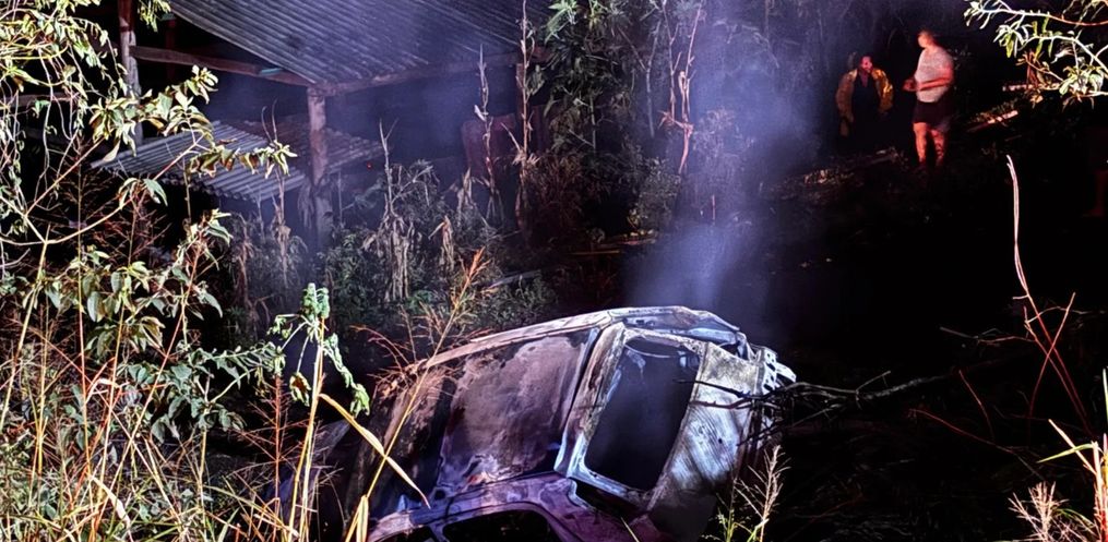 Dentro do carro, os policiais encontraram um homem amarrado e amordaçado no porta-malas. Ele apresentava um ferimento de faca no abdômen e, mesmo socorrido, morreu no Hospital Regional de São Miguel do Oeste.