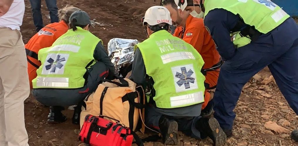 O Corpo de Bombeiros de Quilombo foi acionado na tarde deste domingo, 02, por volta das 17h20 para atender a ocorrência na Linha Santa Lúcia. Foi uma queda de altura de cerca de quatro metros de um homem de 35 anos. Ele estava consciente e desorientado apresentando ferimentos na região da cabeça, suspeita de fratura em arcos costais e suspeita de Traumatismo Craniano Encefálico avaliado em 12 na escala de Glasgow e demais sinais vitais estáveis.