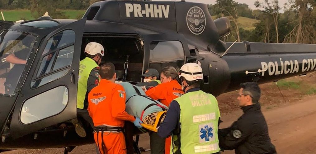 Foram feitos os protocolos de atendimento pré-hospitalar para preservação da região cervical, limpeza de ferimentos, contenção de temperatura e colocação da vítima em maca rígida. Devido a não confirmação da situação da vítima, foi solicitado apoio aeromédico do SAER logo ao recebimento da ocorrência. A vítima foi entregue a equipe médica do SAER/SARA de Chapecó e conduzida ao Hospital Regional do Oeste.