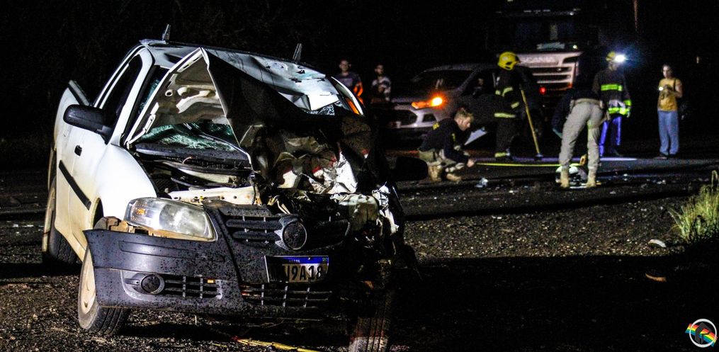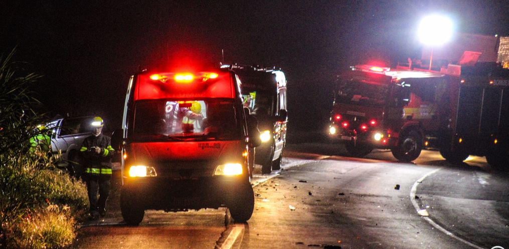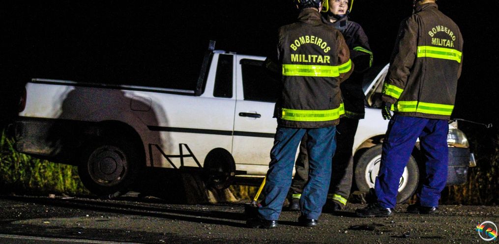 sábado, 18, por volta das 02h30. A colisão frontal envolveu uma Saveiro e uma