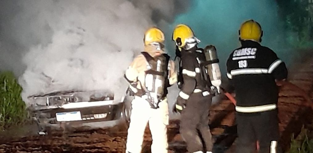 Um veículo ficou completamente destruído após pegar fogo na noite desta segunda-feira, 6, em São José do Cedro. O caso foi registrado por volta das 20h50 na Avenida Salgado Filho, nas proximidades da BR.