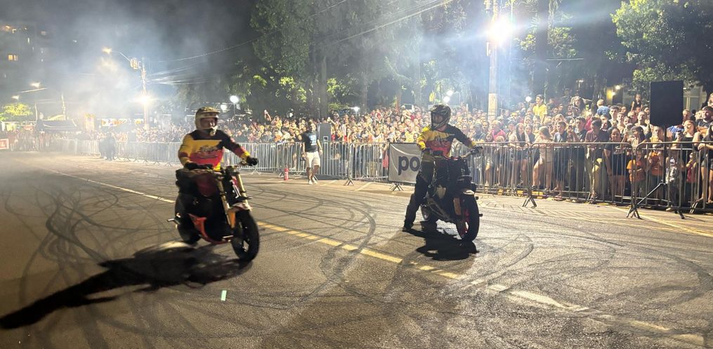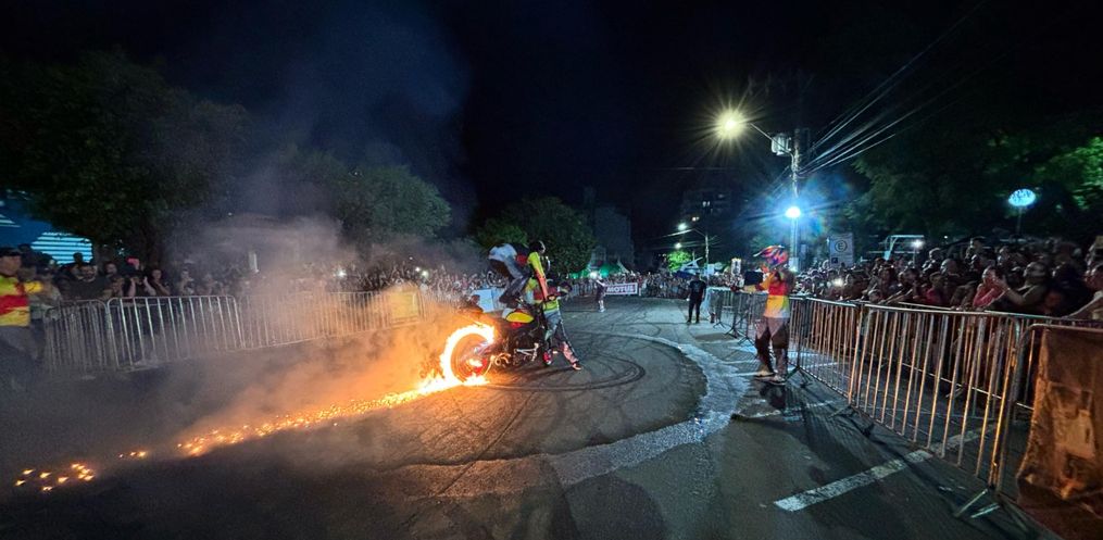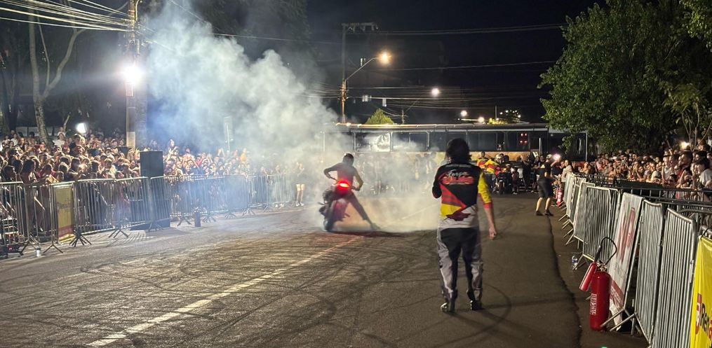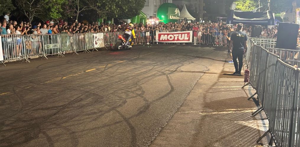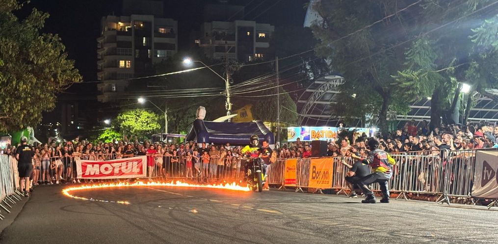 Na noite deste sábado, 8, o Motocão de São Miguel do Oeste recebeu o show de manobras radicais do Grupo Força e Equilíbrio, de Chapecó.